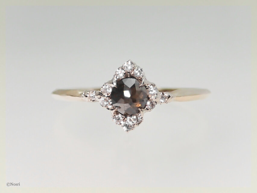 コーヒーブラウン色のローズカットダイヤモンドリングです。