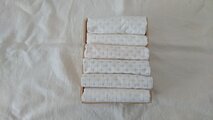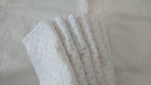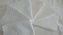 刺し子でふっくらした質感がなんともいえず可愛いです。すぐに布巾として使うのはもったいない気持ちになってしまい、楽しく別用途を考えているところです。素敵な作品どうもありがとうございました。
