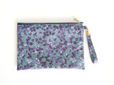 リバティの人気生地、(ビニールコーティングつや無)、Wiltshire ウィルトシャー(ネイビー)便利なWファスナーのフロントクリアポーチ(B6サイズ)を作りました。