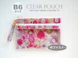 リバティの人気生地、(ビニールコーティングつや無)、 Small Susanna スモールスザンナ(マゼンタピンク)便利なWファスナーのフロントクリアポーチ(B6サイズ)を作りました。