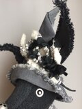 クロッシュ(帽子)には、デニムのコサージュ(ブローチピン)がついています