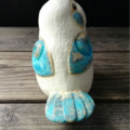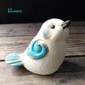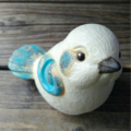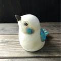 陶器の鳥の置物です。白い体にはターコイズブルーがよく映えます。