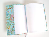 リバティの人気生地、ワイルドフラワーズ Wild Flowers(水色)のラミネート生地(つや無)でA5サイズのノートカバーを作りました。