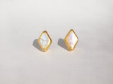 菱型(ダイヤ型)の淡水パールに金箔をあしらったスタッドピアスです。