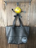 シットリ モッチリな ブラックカウレザーに グレーレザーのニコちゃん付きの、大人ミニトートバッグです^_^