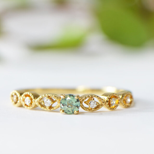 K18 アレキサンドライト ダイヤ リング -Feuille- CB016BS