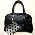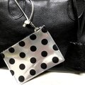 シルバー箔加工にドットプリントの牛革ポーチとキーケース付です。