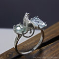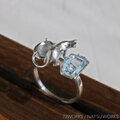 アクアマリンとプレナイトと猫 Aquamarine, Prehnite & Cat Ring