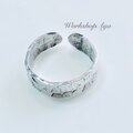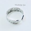 上質なシルバー950の板を槌で叩いて伸ばし、シンプルなオープンリングに仕立てました。
