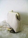 エクリュリネンにアンティークレースをのせたがま口ポーチ