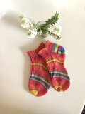 Pennneというパターンで制作しました。デザイナーさんに許可いただけて販売できることになりました。フィット感のある履き心地のいい靴下です。