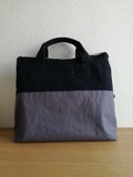 帆布生地2色使い・黒色+チャコールグレー色・でバッグをつくりました。