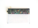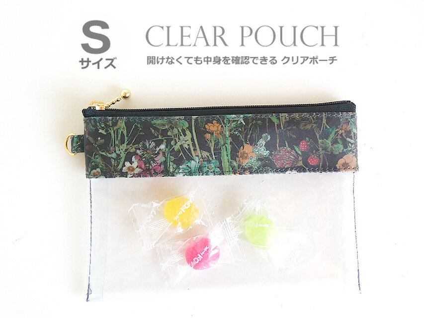 リバティ Sサイズ クリアポーチ (16)ワイルドフラワーズ ダークグリーン