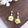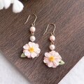⟪全3色⟫ マーガレットとパールのピアス ( つまみ細工*受注制作 )