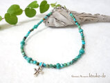 天然色ターコイズとカレンシルバーの天然石アンクレット