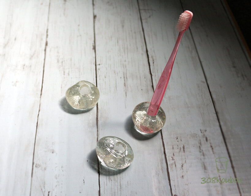 河原の石ころのような、カドの無いガラスのハブラシスタンドです。