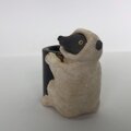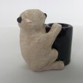 白い被毛が美しいデッケンシファカのモチーフとシックな茶のスタンドにしています。