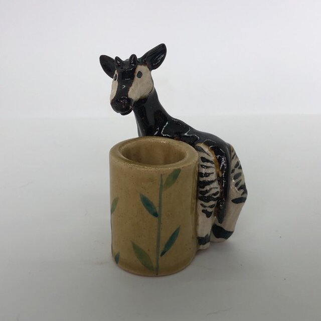 オカピさんモチーフと森をイメージした樹木文様のスタンドにしています。