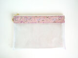 リバティの人気生地(ラミネートつや無)、ミルフルール Mille Fleurs(ライトピンク)で中身が見えるクリアポーチを作りました。