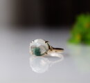 商品画像や説明の通りで、素敵なリングでした。氷ひすいの優しい色と、アームは実は仏さまがいるという、個性的なデザインに惹かれました。また、仕上げの艶消し加工が本当に綺麗です。指にスッと馴染み着け心地も良いです。たいへん気に入りました。大切にします。丁寧なご対応もありがとうございました。