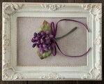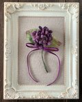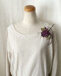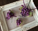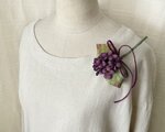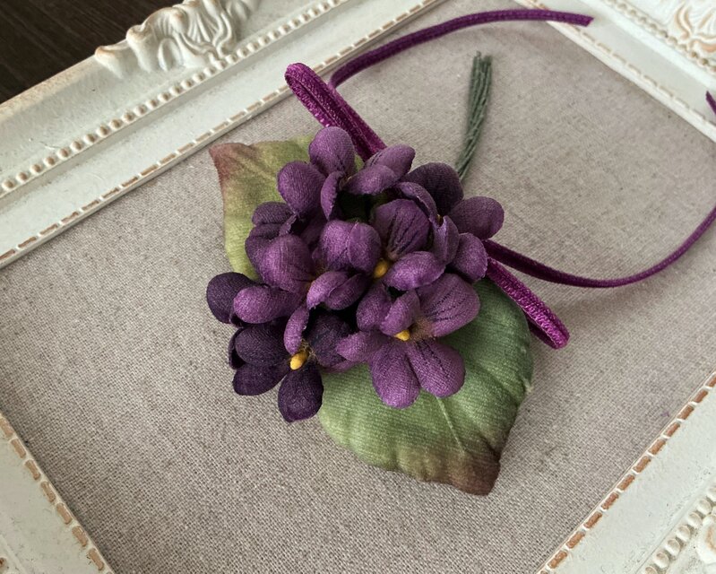 染め花の小さなすみれを束ねて花束にしたコサージュ。