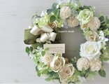 ウェディングブーケにもつかわれる バラの花を リースにしています