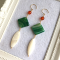 Green ホワイトシェルとグリーン縞瑪瑙のセミロングネックレス