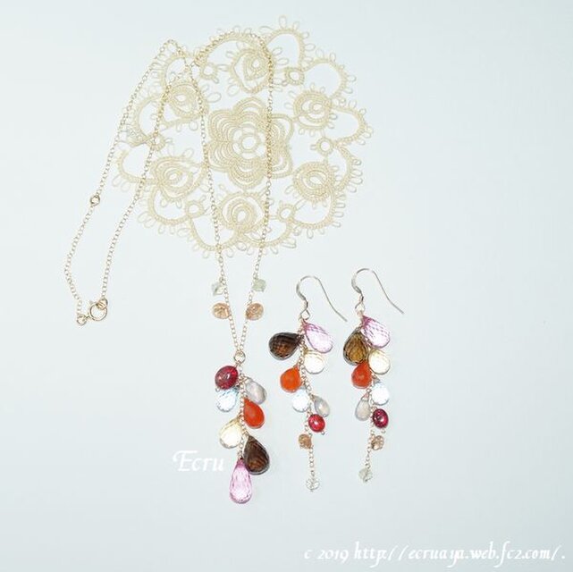 素材:宝石質レッドスピネルAAA オーバル、スコロライト ペアシェイプブリオレットカット、スカイブルートパーズ ドロップブリオレットカット、宝石質カーネリアンAAA ドロップブリオレットカット、宝石質シトリンAAA ドロップブリオレットカット、素晴らしい輝きスモーキークォーツAAA ドロップブリオレットカット、宝石質ピンクトパーズAAA ドロップブリオレットカット、宝石質インペリアルトパーズAAA ロンデル、プレナイトAAA ロンデル、その他すべて14kgf