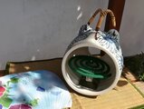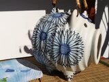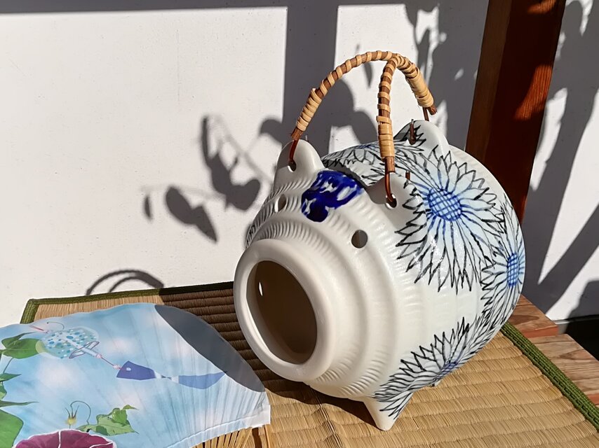 昔ながらの豚の形に、涼やかな青で描いた花が大人っぽくもあり、可愛らしい印象の蚊取り線香ホルダーです。