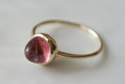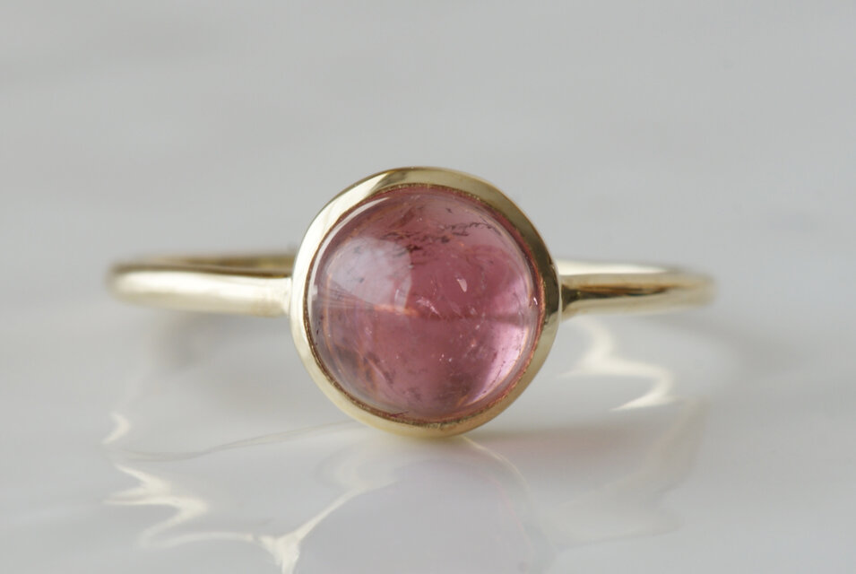 ピンクトルマリンを覆輪留めで仕立ててあります。