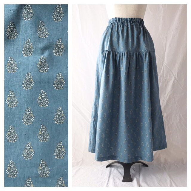 はくだけで美人に変身するティアードスカート(フレンチフラワー:ブルー)