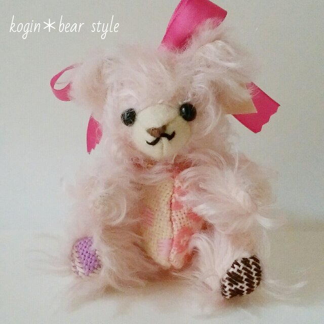 この、こぎん刺しを使った手のひらに乗るテディベアはkogin*bear styleの特徴です。