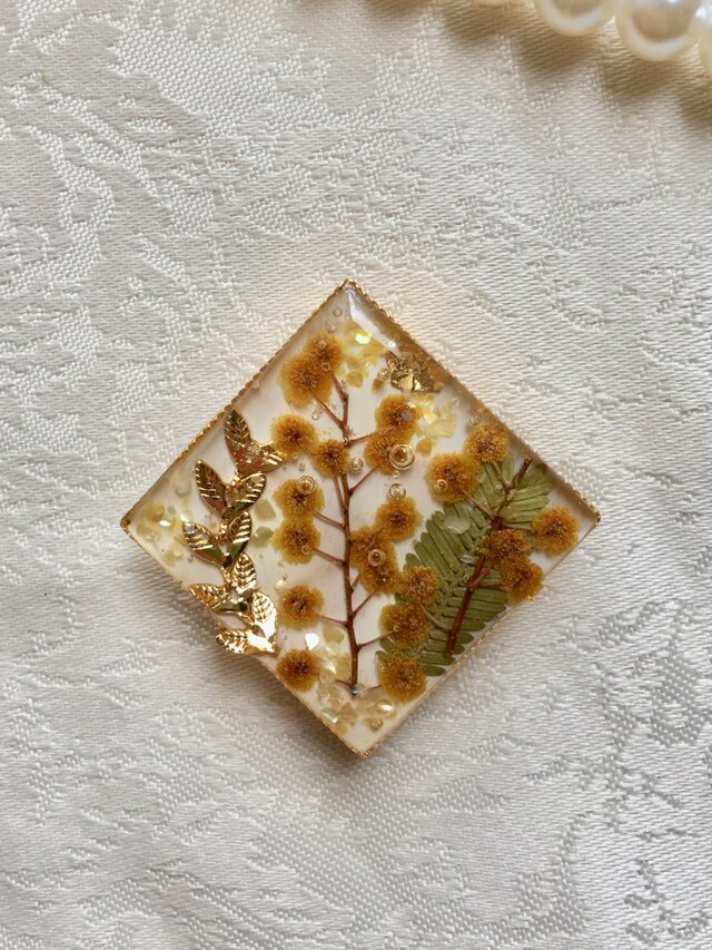 3ways (帯留め/スカーフ・ストール留/ペンダントトップ) ミモザ押し花入り