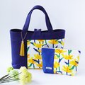 ※写真5のように、バッグの無地生地は紺色、ポーチは濃い青色となります。