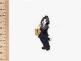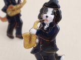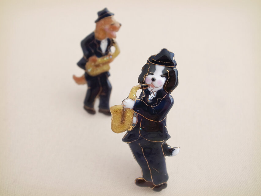 ごきげんな犬たち(サックス奏者)の七宝ブローチ。