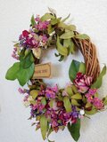 バラ、タタリカ、キンポウジュ、レモンリーフなどをアレンジしたナチュラルなリースです。