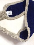 アクリルとレーヨンが混ざった糸(ネイビー)と麻糸(きなり)を使用しています