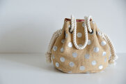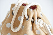 ドットの箔が目を引くジュートの布で作ったマリンバッグが数量限定で出来上がりました。