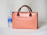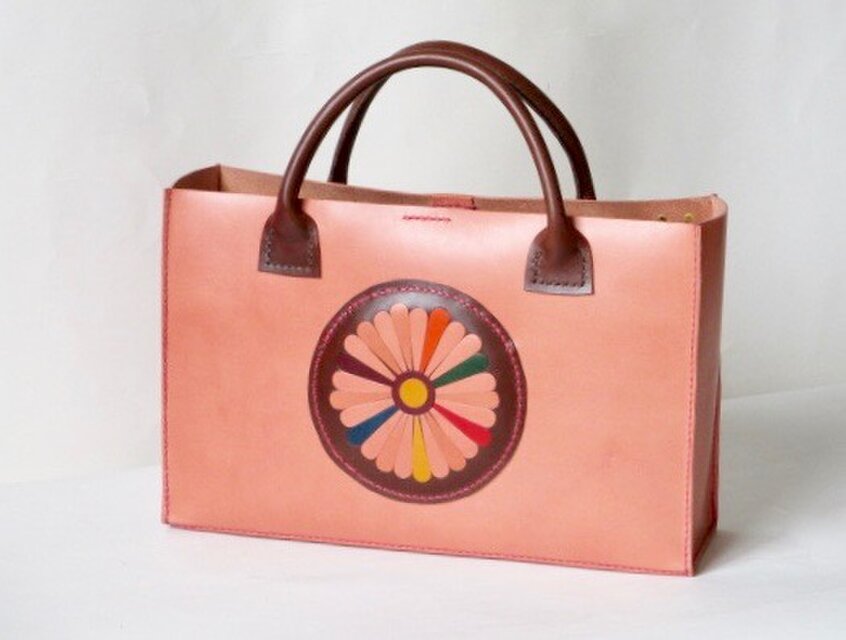 イタリア革ブッテーロの工芸的トート(ピンクXこげ茶)