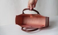 革は固めでしっかりしていますが、重くはありません。四角なので、たっぷり入り、ペットボトルが縦にちょうど入ります。