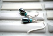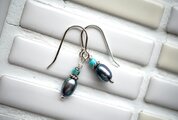 玉虫色に輝く美しいライスパールにターコイズの冠をちょこんと載せてみたピアス。