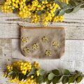 手刺繍ミモザリースの小さめポーチ② 小物入れ