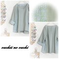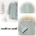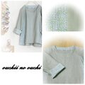 しっとりリネンダークシーグリーンとリバティ リネンの大人気柄Sleeping Rose(スリーピングローズ)グリーンブルー系でサイド切り替え後ろ下がりのプルオーバーブラウスをおつくりしました。