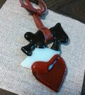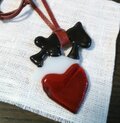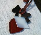 板ガラスからトランプの柄を切り出して、重ねてネックレスにデザインしました。全体にフラットな感じに仕上げています。