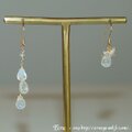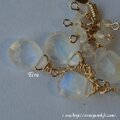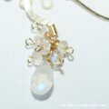 もう片方には、ピアスパーツに宝石質レインボームーンストーンAAAの小粒ボタンカットを6個下げ、同時に宝石質レインボームーンストーンAAAのペアシェイプを一粒下げています。
