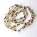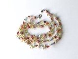 シトリンのうっすらしたオレンジ色、シリシャスシストのピンク色、ガラスビーズの緑色などを合わせて植物のリースをイメージしたネックレスです