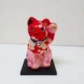 着物の美しい柄が融合して手に取って思わずニヤリとしてしまうような招き猫が仕上がりました。