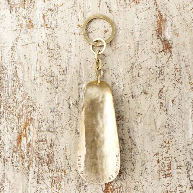 最近は、お手頃価格の真鍮製靴べらも雑貨店などで見かけるようになってきましたが、一点一点叩いたものは、量産品にはない温もりがあります。