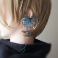 ※ご注意写真も掲載していますが、金具の破損防止のためお届け時はイヤーカフパーツが飾り結びに対して平行に「倒れて」いますのでそっとゆっくり起こしてください。90°きっちり起こす必要はありません。※
