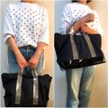 コーデュラナイロン500の黒とエナメル加工山羊革で作った軽くて丈夫なトートバックです。